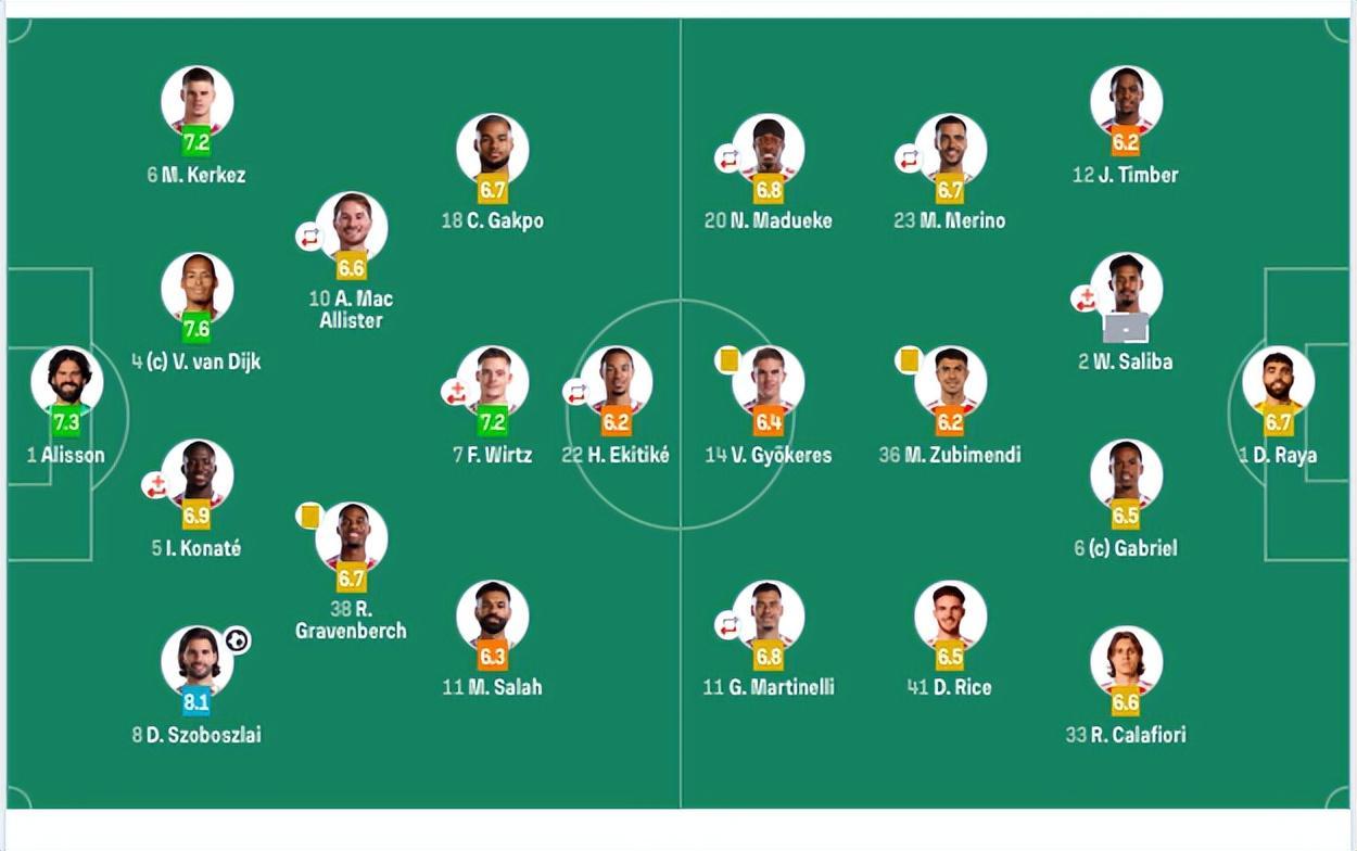 利物浦首发:1-阿利森、4-范迪克、5-科纳特(79’2-戈麦斯)、6-科尔克兹、8-索博斯洛伊、10-麦卡利斯特(61’17-琼斯)、38-赫拉芬贝赫、18-加克波、7-维尔茨(88’3-远藤航)、11-萨拉赫、22-埃基蒂克(79’14-基耶萨)。